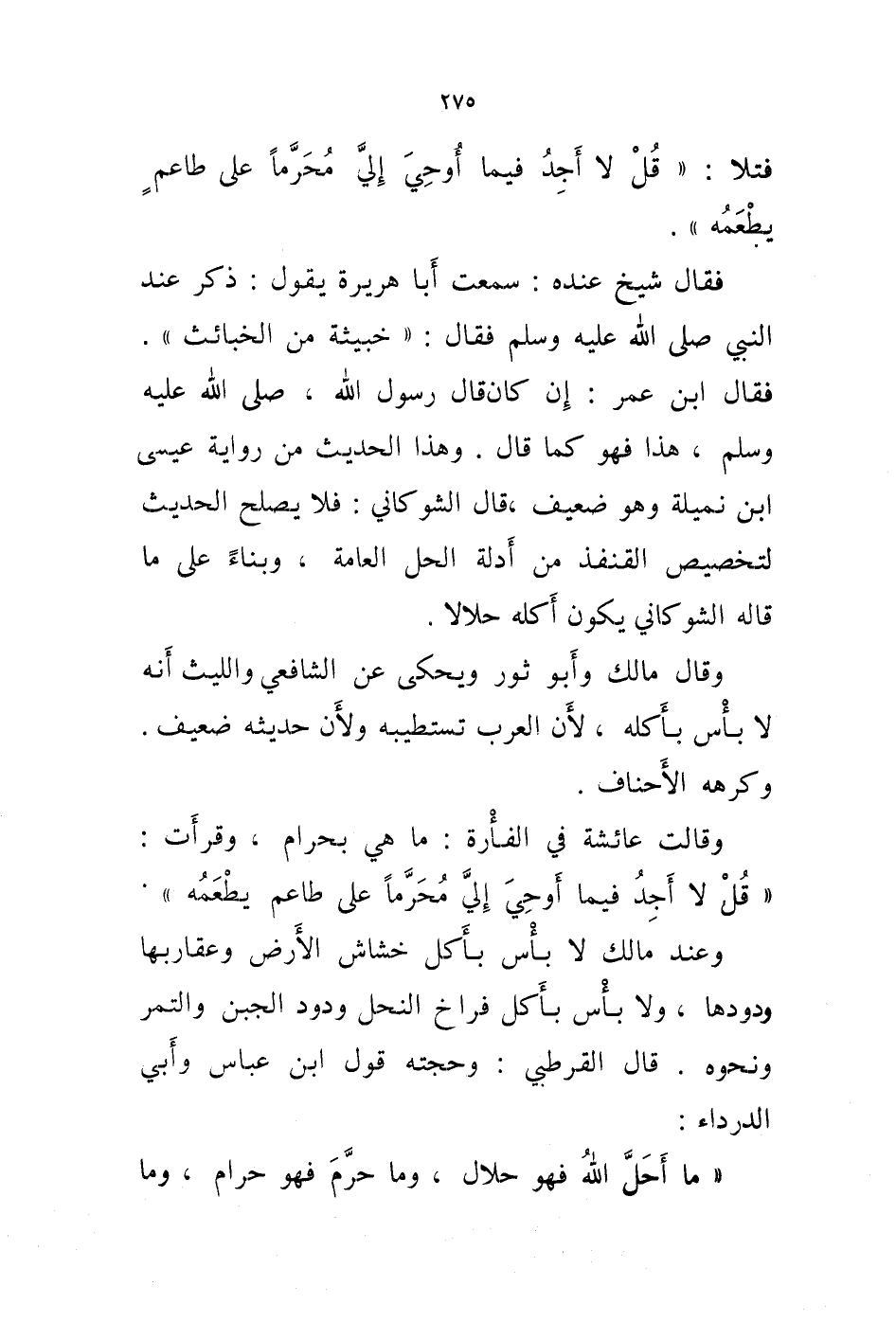 فتلا: " قل لا أجد فيما أوحي إلي محرما على طاعم يطعمه ".