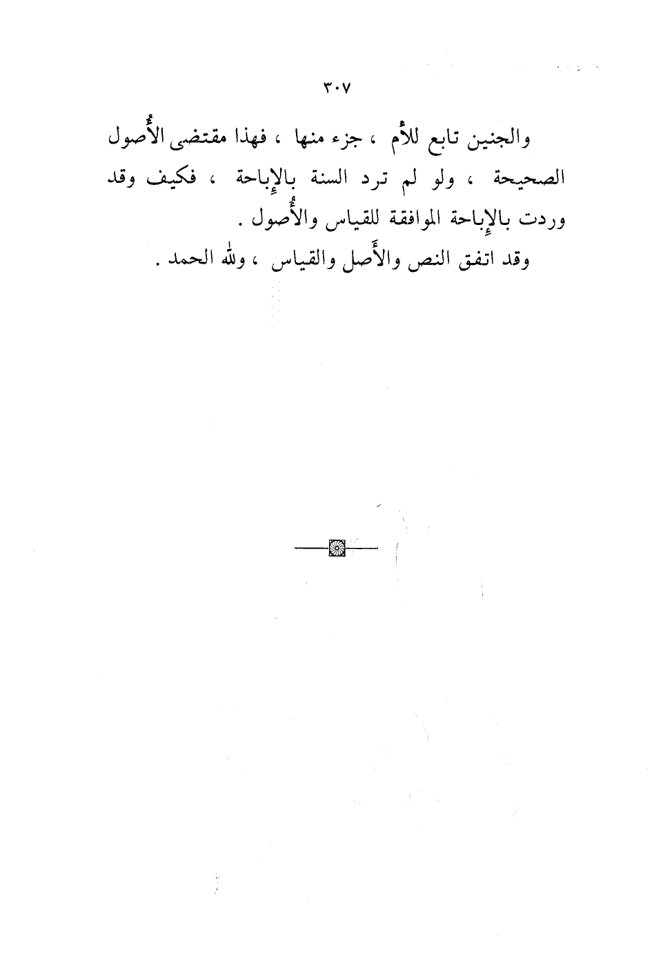 والجنين تابع للأم، جزء منها، فهذا مقتضى الاصول الصحيحة، ولو لم ترد السنة بالاباحة، فكيف وقد وردت بالاباحة الموافقة للقياس والاصول.