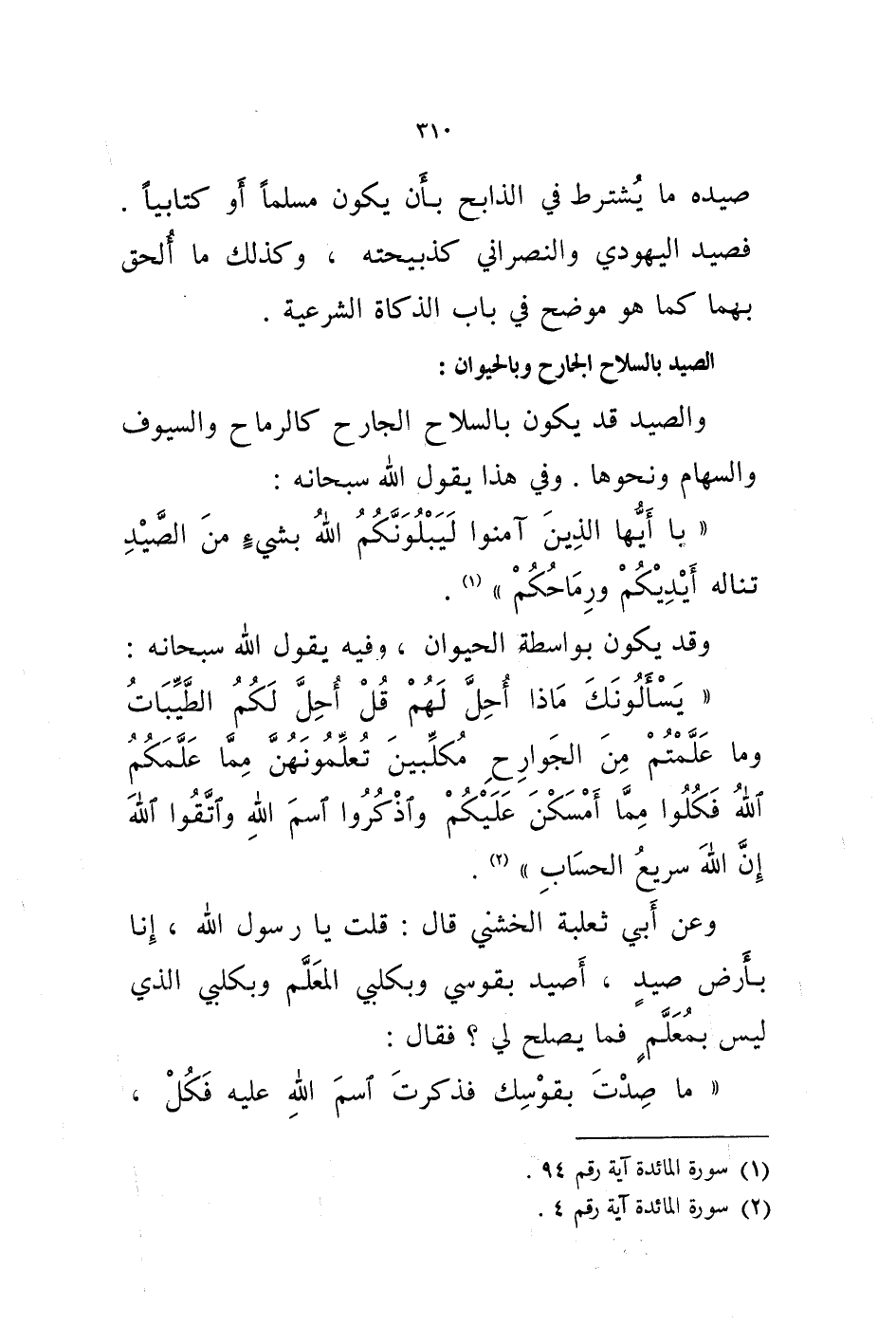 وقد يكون بواسطة الحيوان، وفيه يقول الله سبحانه: " يسألونك ماذا أحل لهم قل أحل لكم الطيبات وما علمتم من الجوارح مكلبين تعلمونهن مما علمكم الله فكلوا مما أمسكن عليكم واذكروا اسم الله واتقوا الله إن الله سريع الحساب " (2) .