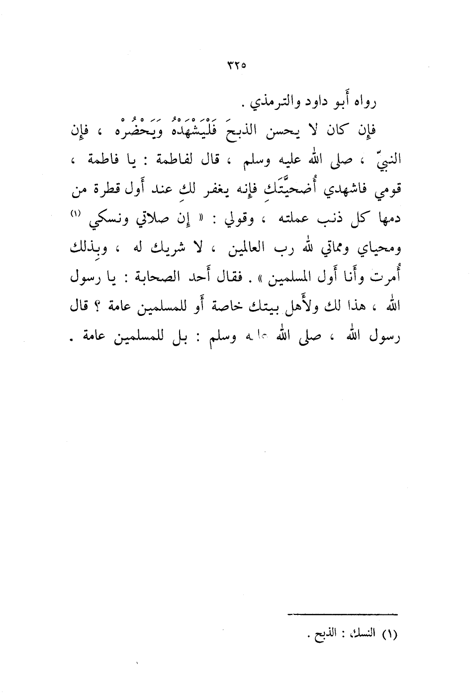(1) النسك: الذبح.