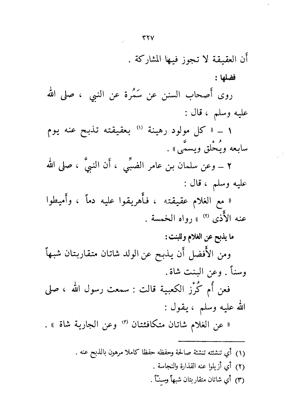 1 - " كل مولود رهينة (1) بعقيقته تذبح عنه يوم سابعه ويحلق ويسمى ".