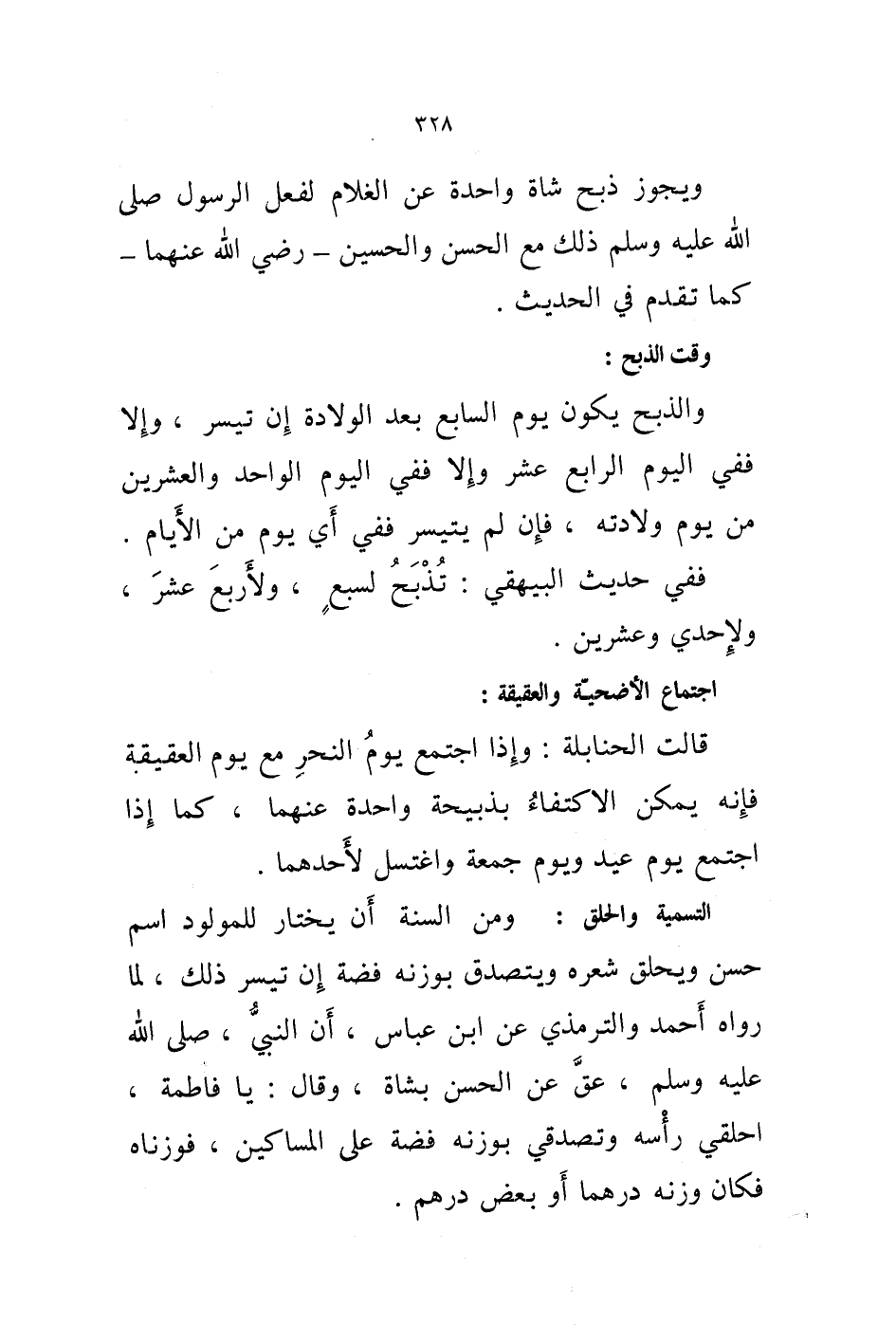 قالت الحنابلة: وإذا اجتمع يوم النحر مع يوم العقيقة فإنه يمكن الاكتفاء بذبيحة واحدة عنهما، كما إذا اجتمع يوم عيد ويوم جمعة واغتسل لاحدهما.
