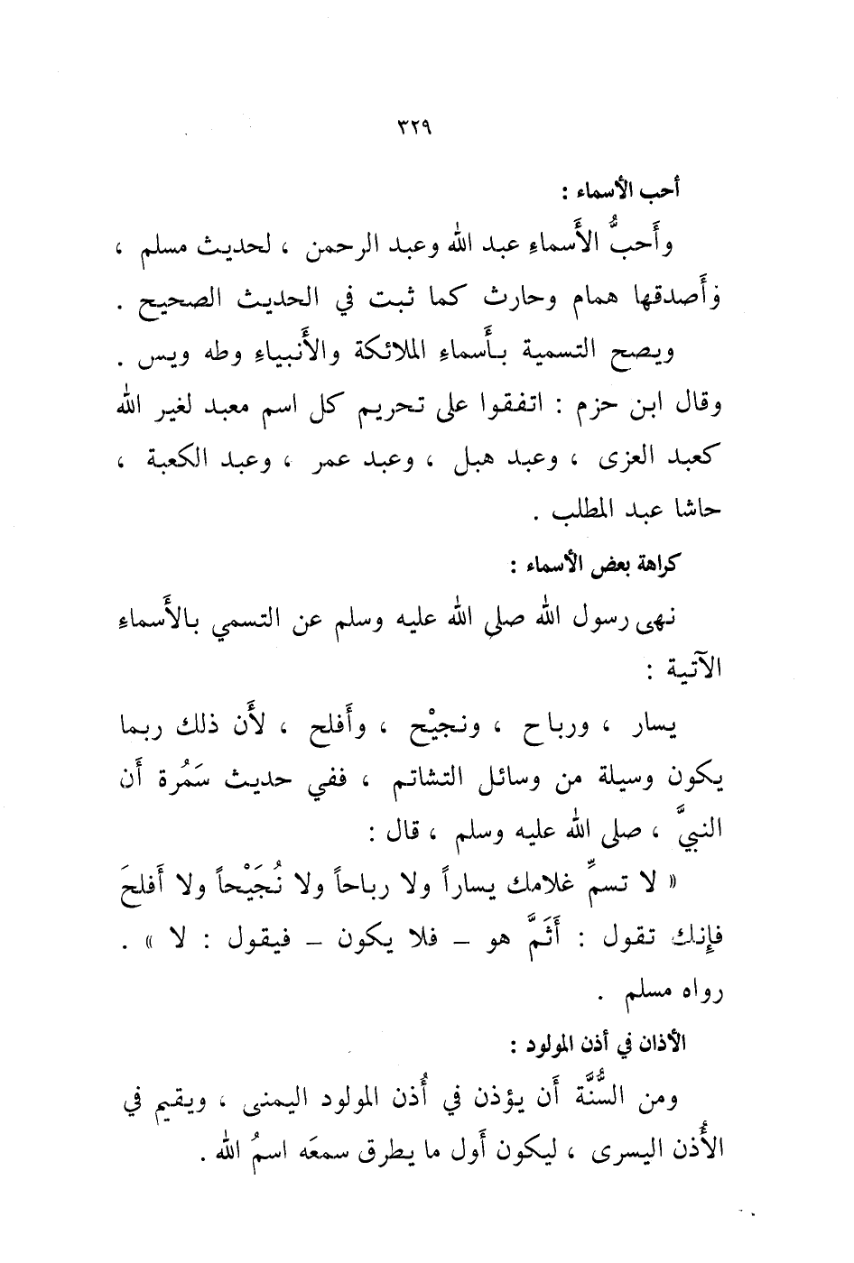 وأحب الاسماء عبد الله وعبد الرحمن، لحديث مسلم، وأصدقها همام وحارث كما ثبت في الحديث الصحيح.