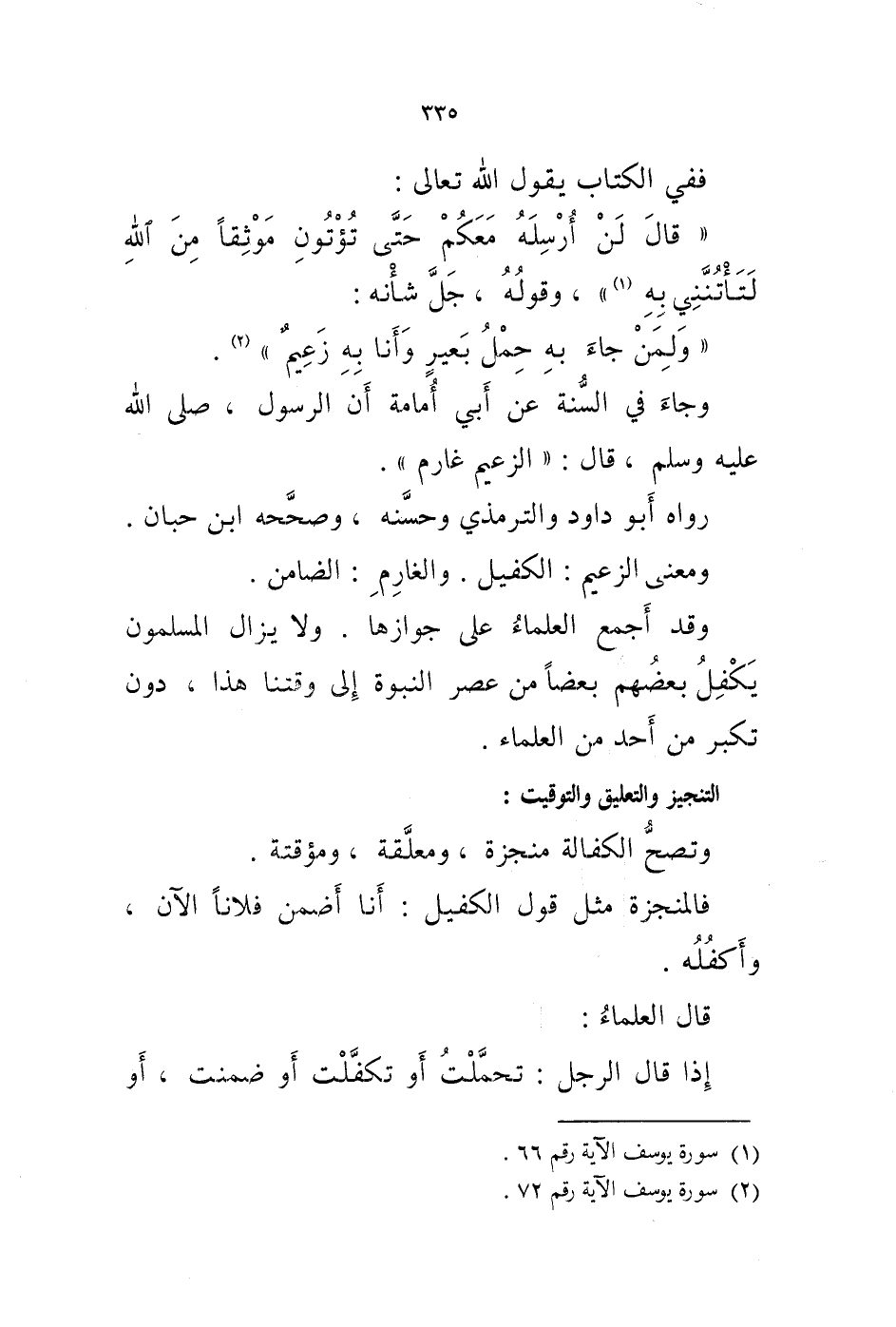 ففي الكتاب يقول الله تعالى: " قال لن أرسله معكم حتى تؤتون موثقا من الله لتأتنني به (1) "، وقوله، جل شأنه: " ولمن جاء به حمل بعير وأنا به زعيم " (2) .
