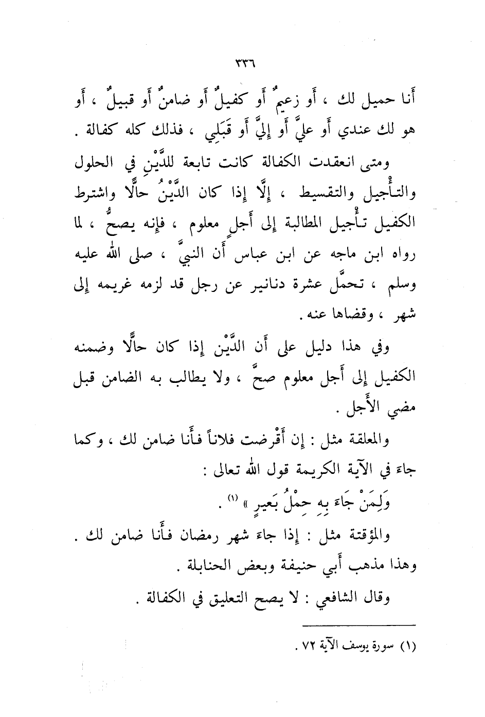والمعلقة مثل: إن أقرضت فلانا فأنا ضامن لك، وكما جاء في الاية الكريمة قول الله تعالى: ولمن جاء به حمل بعير " (1) .