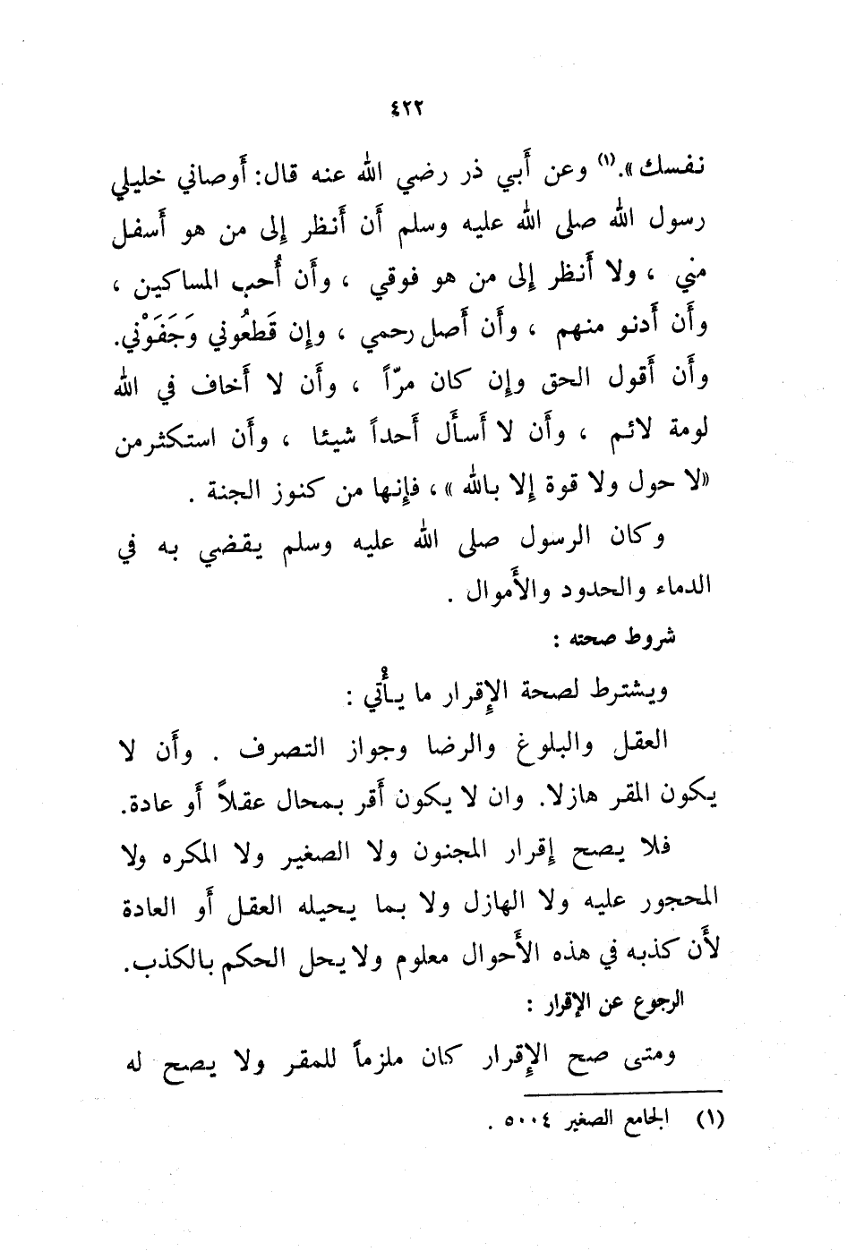 (1) وعن أبي ذر رضي الله عنه قال: أوصاني خليلي رسول الله صلى الله عليه وسلم أن أنظر إلى من هو أسفل مني، ولا أنظر إلى من هو فوقي، وأن أحب المساكين، وأن أدنو منهم، وأن أصل رحمي، وإن قطعوني وجفوني.