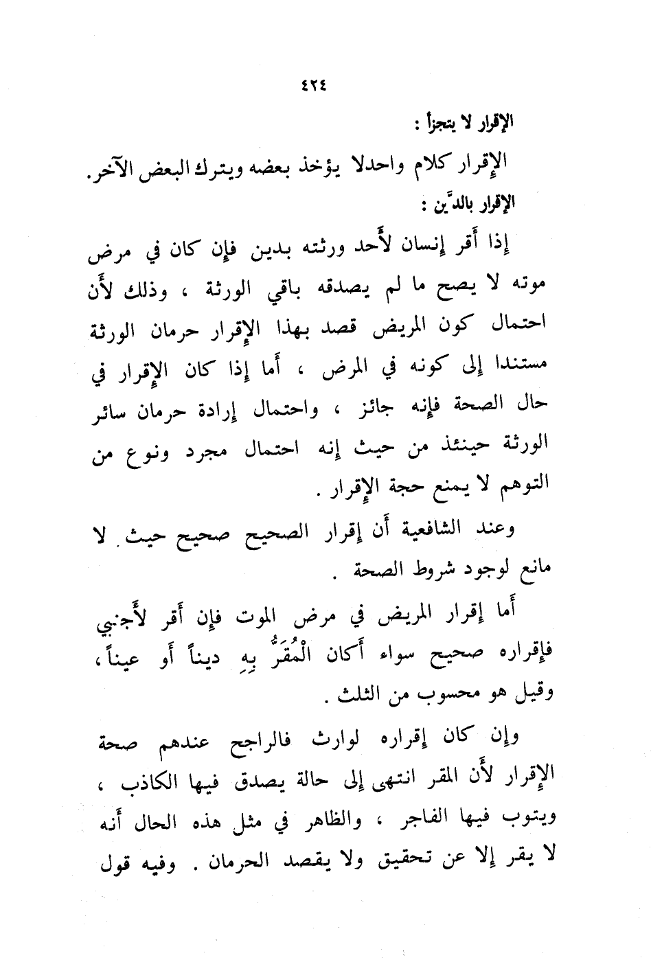 الإقرار كلام واحد لا يؤخذ بعضه ويترك البعض الاخر.