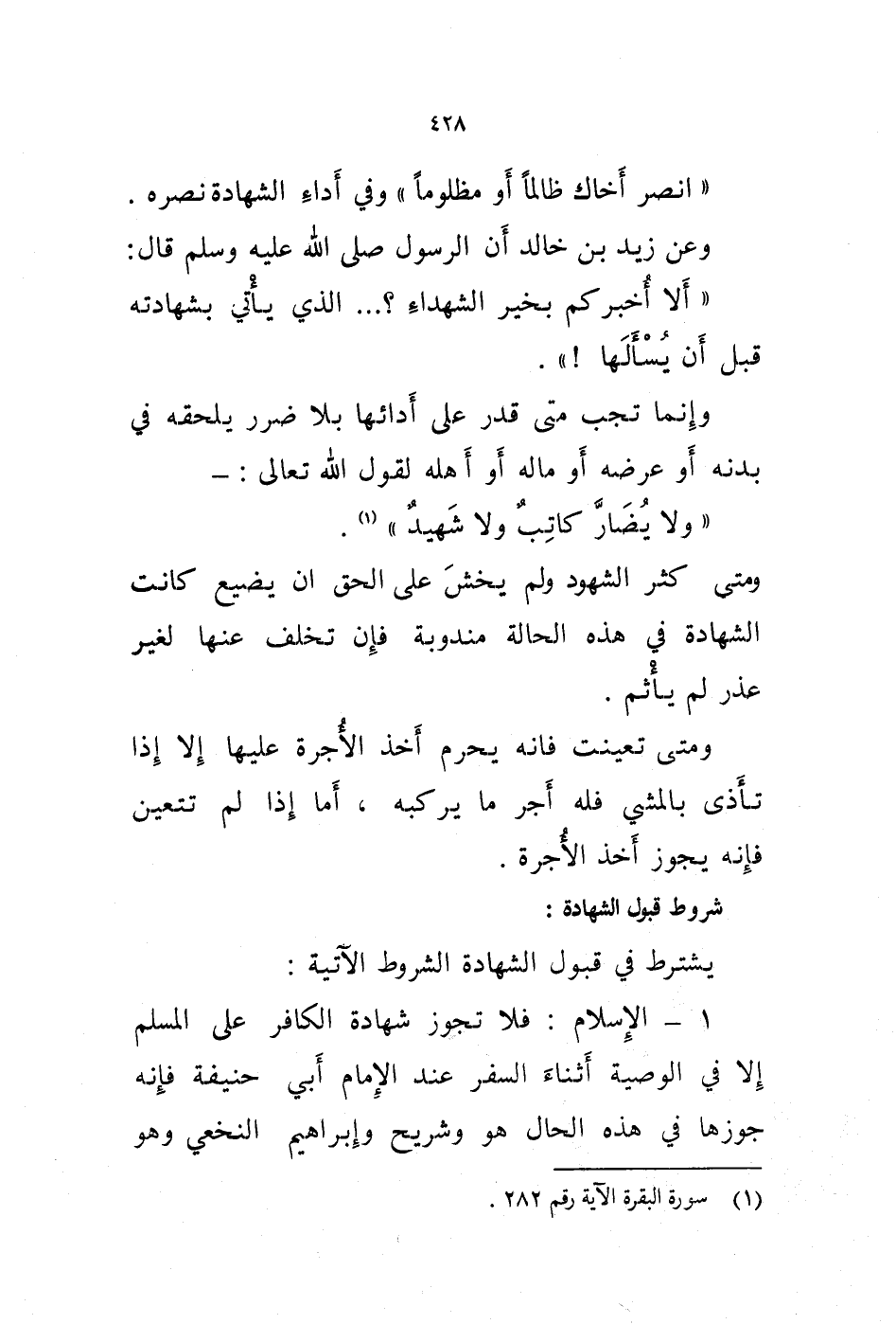 وعن زيد بن خالد أن الرسول صلى الله عليه وسلم قال: " ألا أخبركم بخير الشهداء؟ ... الذي يأتي بشهادته قبل أن يسألها! ".