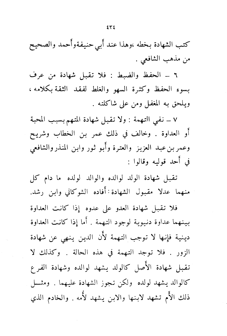 7 - نفي التهمة: ولاتقبل شهادة المتهم بسبب المحبة أو العداوة.
