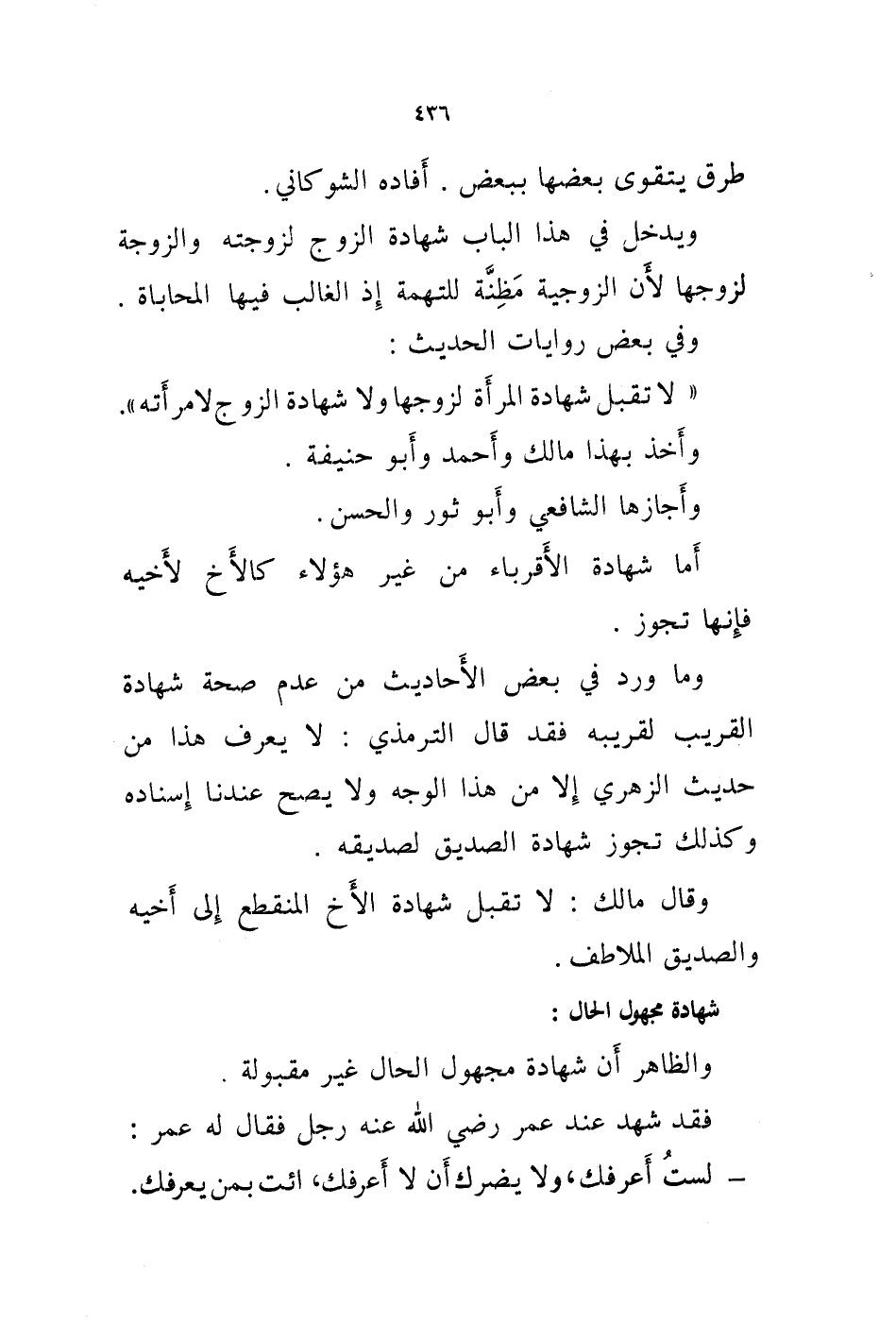 والظاهر أن شهادة مجهول الحال غير مقبولة.