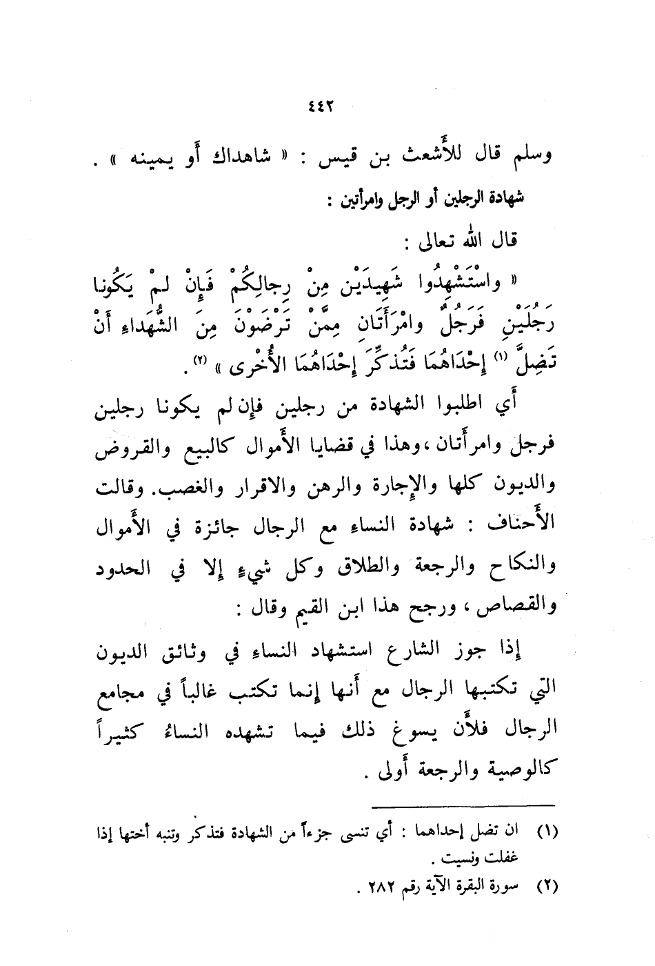 قال الله تعالى: " واستشهدوا شهيدين من رجالكم فإن لم يكونا رجلين فرجل وامرأتان ممن ترضون من الشهداء أن تضل (1) إحداهما فتذكر إحداهما الاخرى " (2) .