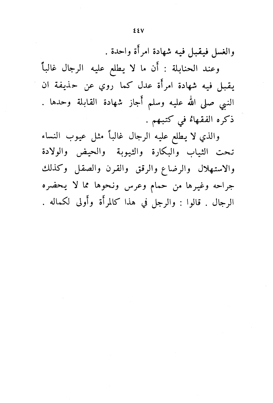 والغسل فيقبل فيه شهادة امرأة واحدة.