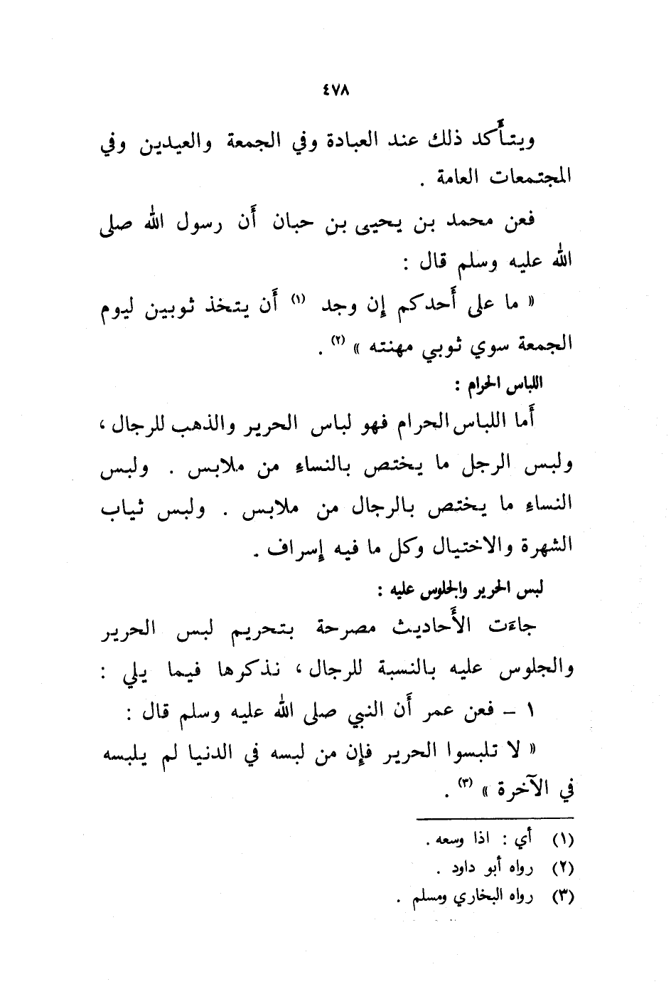 ويتأكد ذلك عند العبادة وفي الجمعة والعيدين وفي المجتمعات العامة.