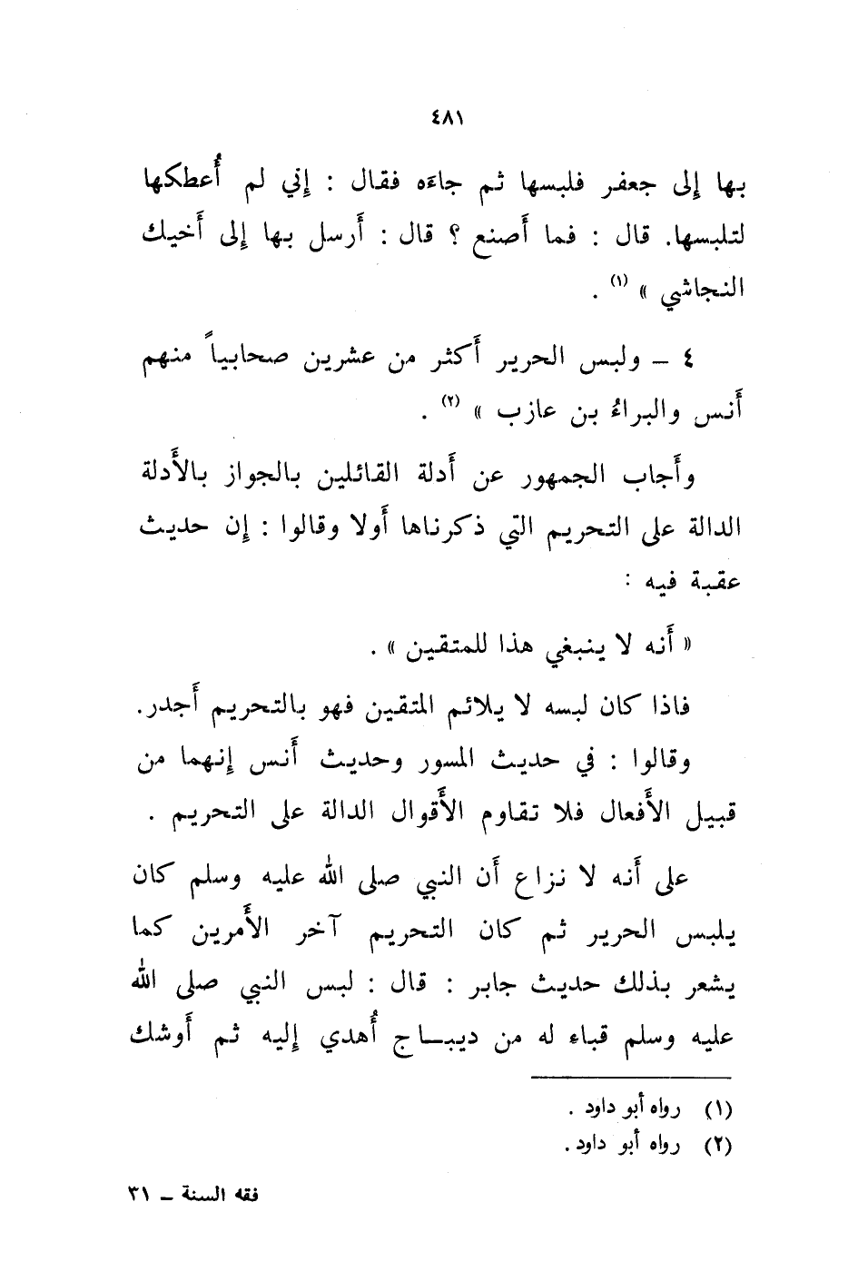 4 - ولبس الحرير أكثر من عشرين صحابيا منهم أنس والبراء من عازب " (2) .