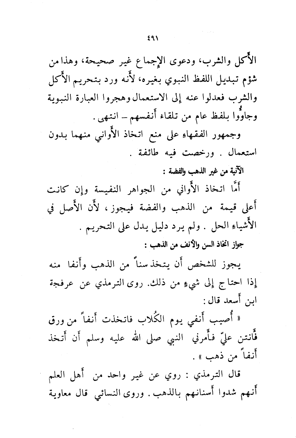 الاكل والشرب، ودعوى الاجماع غير صحيحة، وهذا من شؤم تبديل اللفظ النبوي بغيره، لانه ورد بتحريم الاكل والشرب فعدلوا عنه إلى الاستعمال وهجروا العبارة النبوية وجاؤوا بلفظ عام من تلقاء أنفسهم - انتهى.