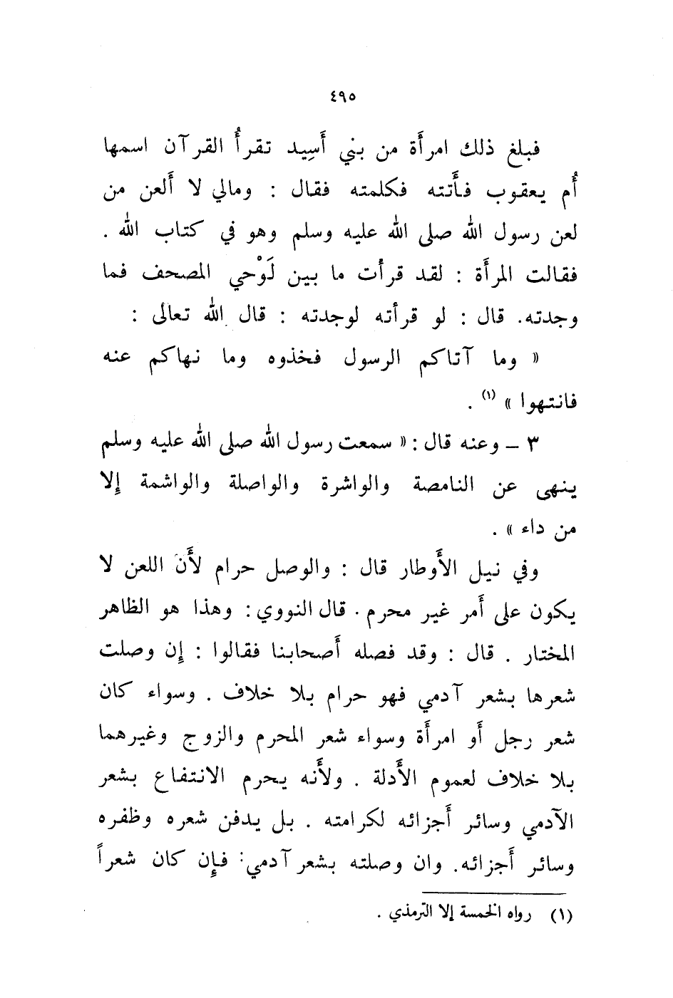 وفي نيل الاوطار قال: والوصل حرام لان اللعن لا يكون على أمر غير محرم.