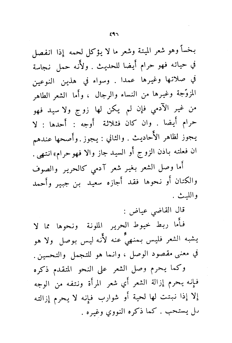 وسواء في هذين النوعين المزوجة وغيرها من النساء والرجال، وأما الشعر الطاهر من غير الآدمي فإن لم يكن لها زوج ولاسيد فهو حرام أيضا.