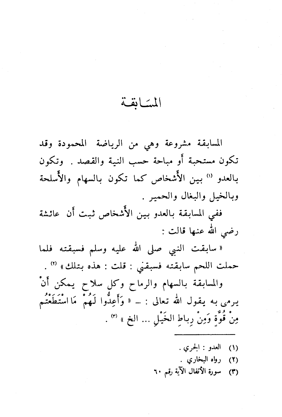 وتكون بالعدو (1) بين الاشخاص كما تكون بالسهام والاسلحة وبالخيل والبغال والحمير.