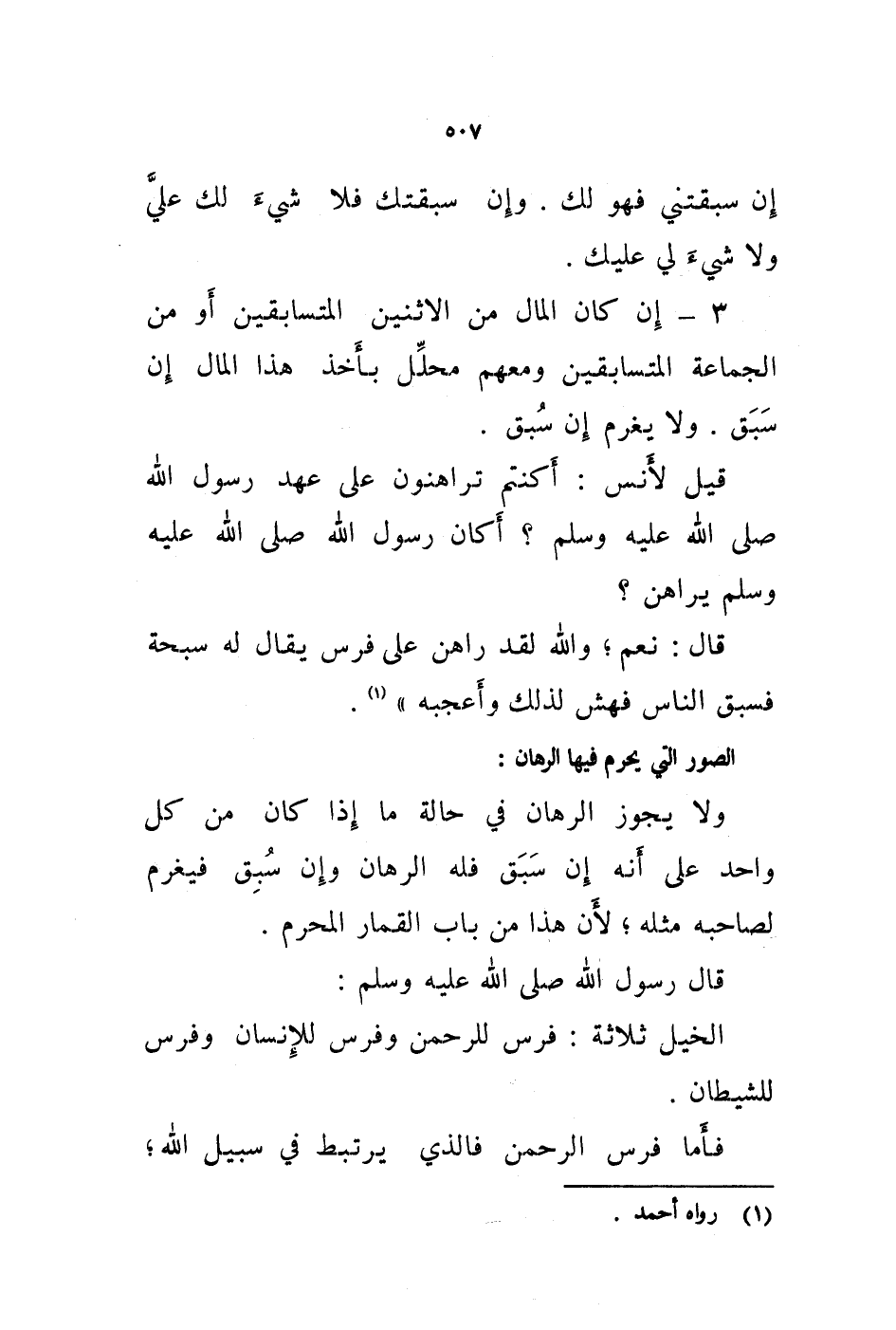 قيل لانس: أكنتم تراهنون على عهد رسول الله صلى الله عليه وسلم؟ أكان رسول الله صلى الله عليه وسلم يراهن؟ قال: نعم، والله لقد راهن على فرس يقال له سبحة فسبق الناس فهش لذلك وأعجبه " (1) .