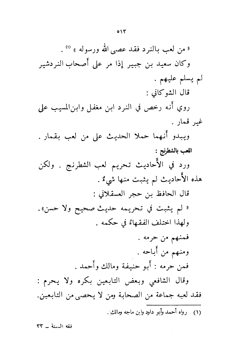 وقال الشافعي وبعض التابعين بكره ولا يحرم: فقد لعبه جماعة من الصحابة ومن لا يحصى من التابعين.