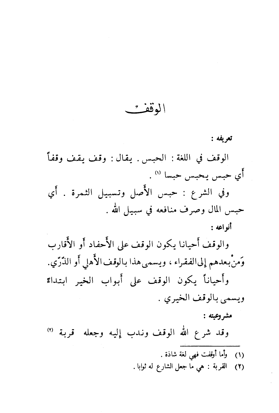 تعريفه: الوقف في اللغة: الحبس.