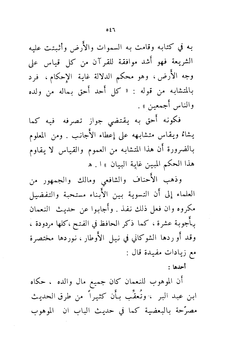 فكونه أحق به يقتضي جواز تصرفه فيه كما يشاء ويقاس متشابهه على إعطاء الاجانب. ومن المعلوم بالضرورة أن هذا المتشابه من العموم والقياس لا يقاوم هذا الحكم المبين غاية البيان " ا. هـ