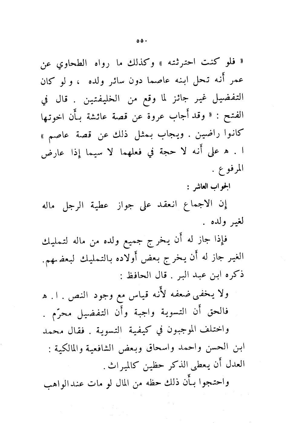الجواب العاشر: إن الاجماع انعقد على جواز عطية الرجل ماله لغير ولده.