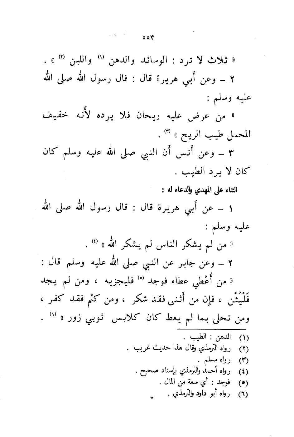 1 - عن أبي هريرة قال: قال رسول الله صلى الله عليه وسلم: " من لم يشكر الناس لم يشكر الله " (4) .