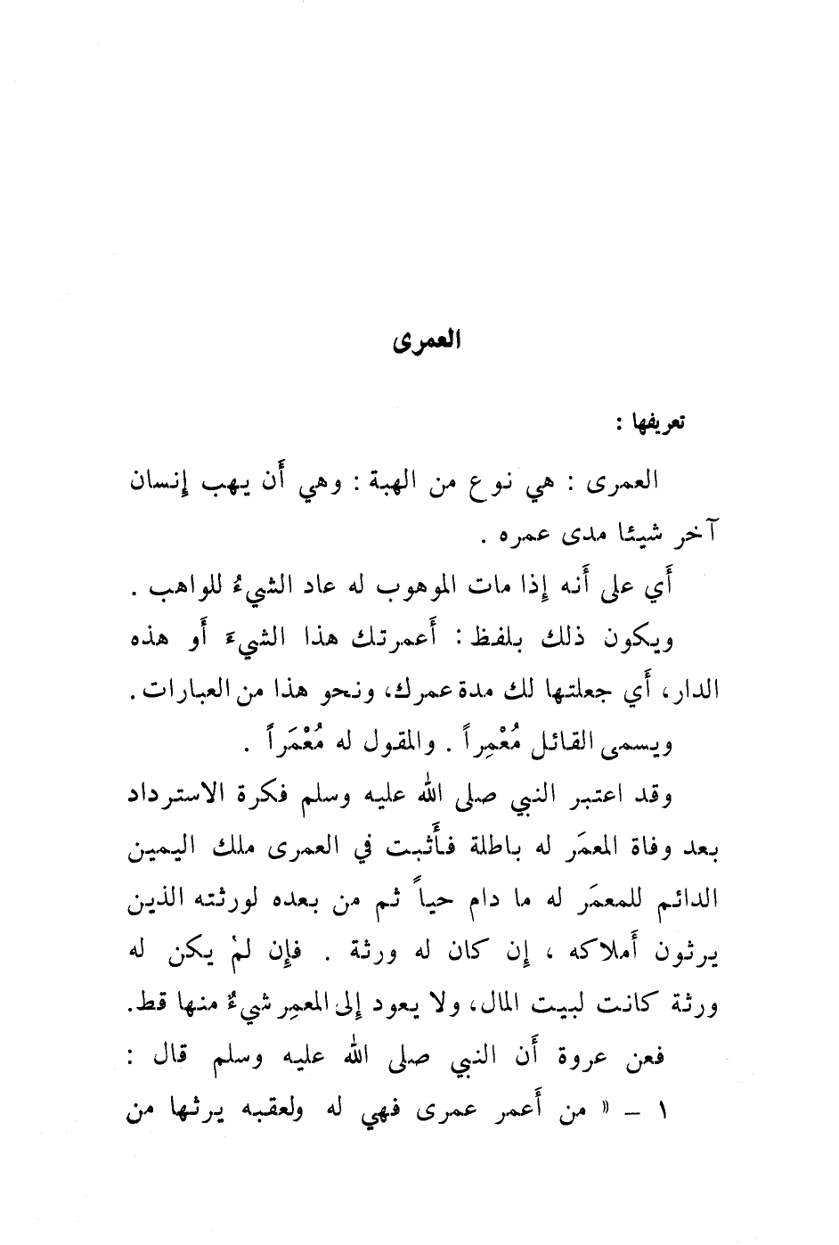 1 - " من أعمر عمرى فهي له ولعقبه يرثها من