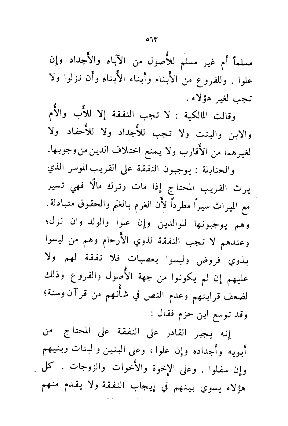 مسلما أم غير مسلم للاصول من الاباء والاجداد وإن علوا. وللفروع من الابناء وأبناء الابناء وأن نزلوا ولا تجب لغير هؤلاء.