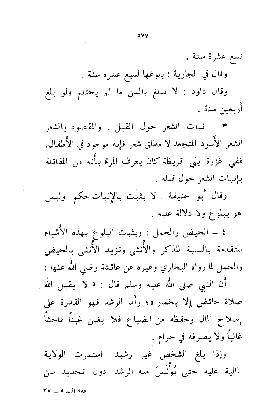 4 - الحيض والحمل: ويثبت البلوغ بهذه الاشياء المتقدمة.