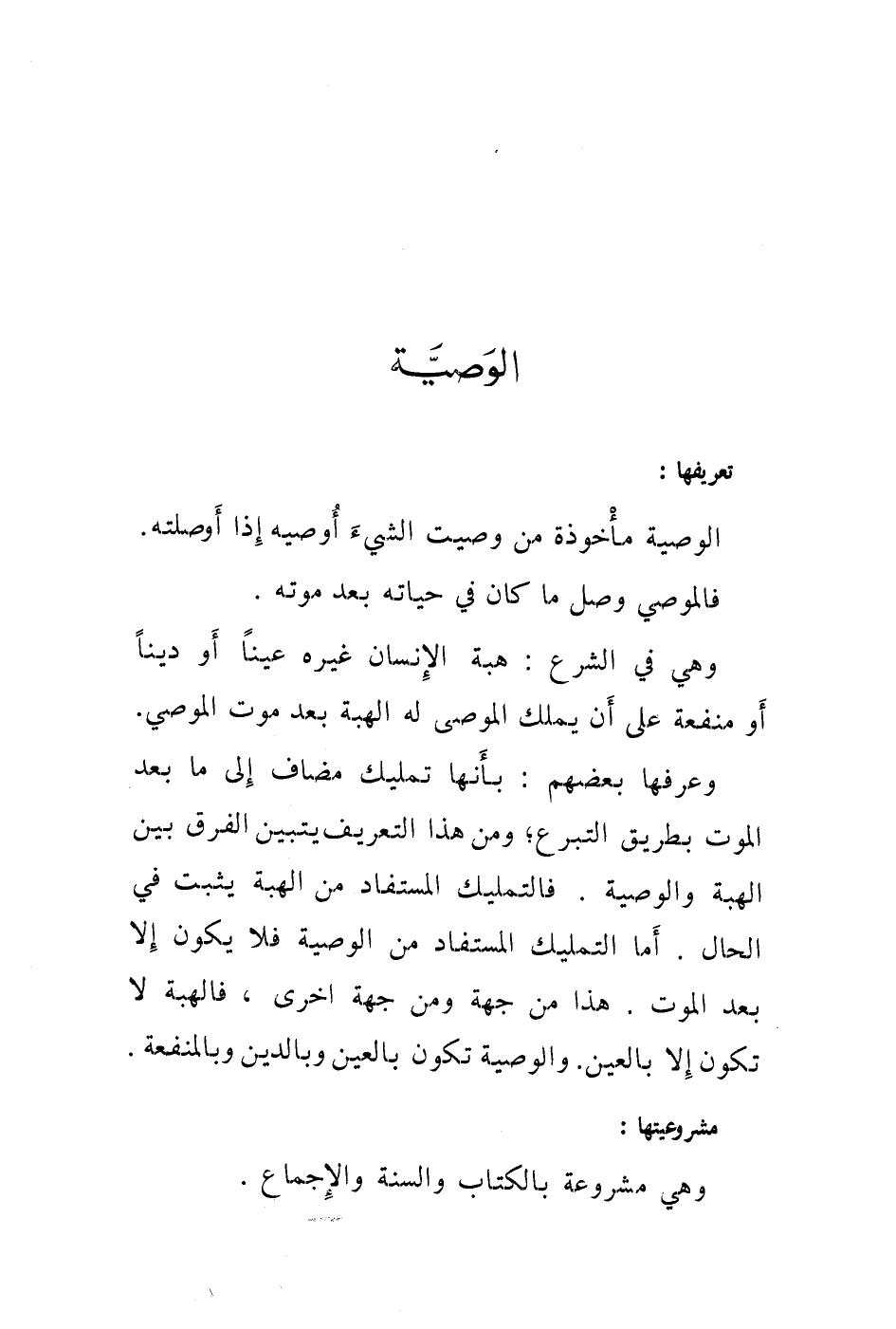 وعرفها بعضهم: بأنها تمليك مضاف إلى ما بعد الموت بطريق التبرع، ومن هذا التعريف يتبين الفرق بين الهبة والوصية.