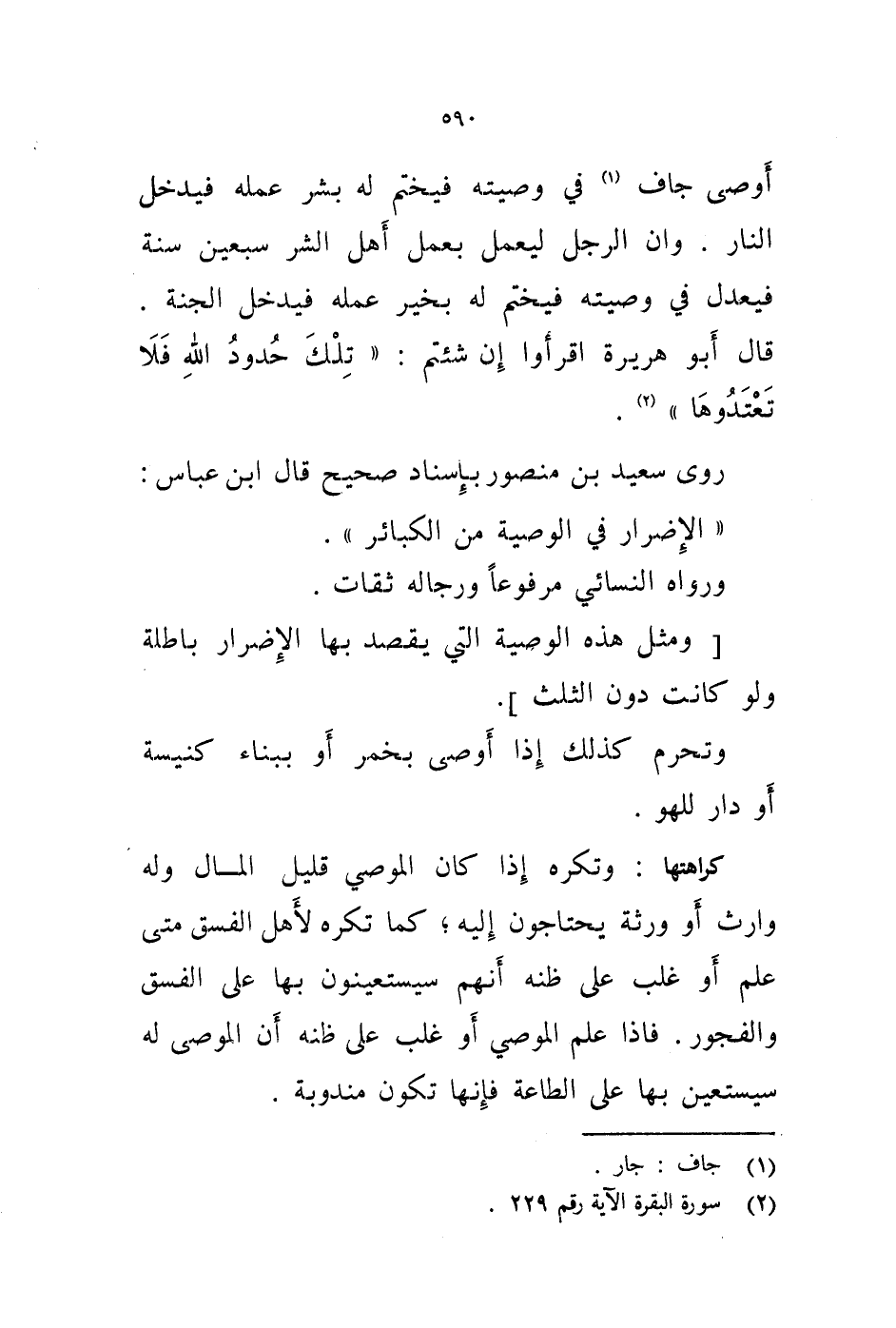 روى سعيد بن منصور بإسناد صحيح قال ابن عباس: " الاضرار في الوصية من الكبائر ".