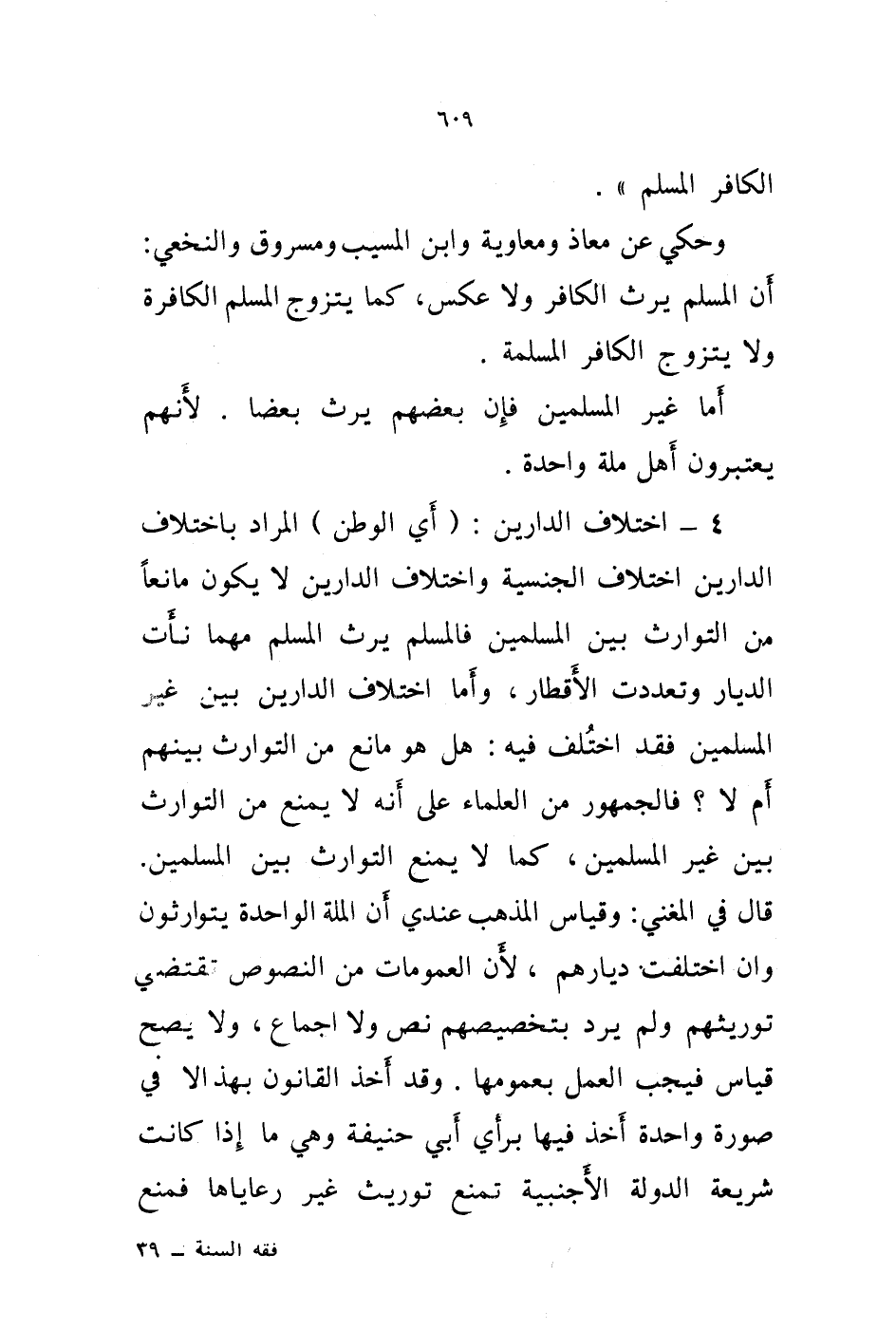 أما غير المسلمين فإن بعضهم يرث بعضا.