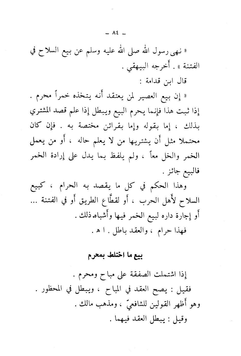 (نهى رسول الله صلى الله عليه وسلم عن بيع السلاح في الفتنة) أخرجه البيهقي.