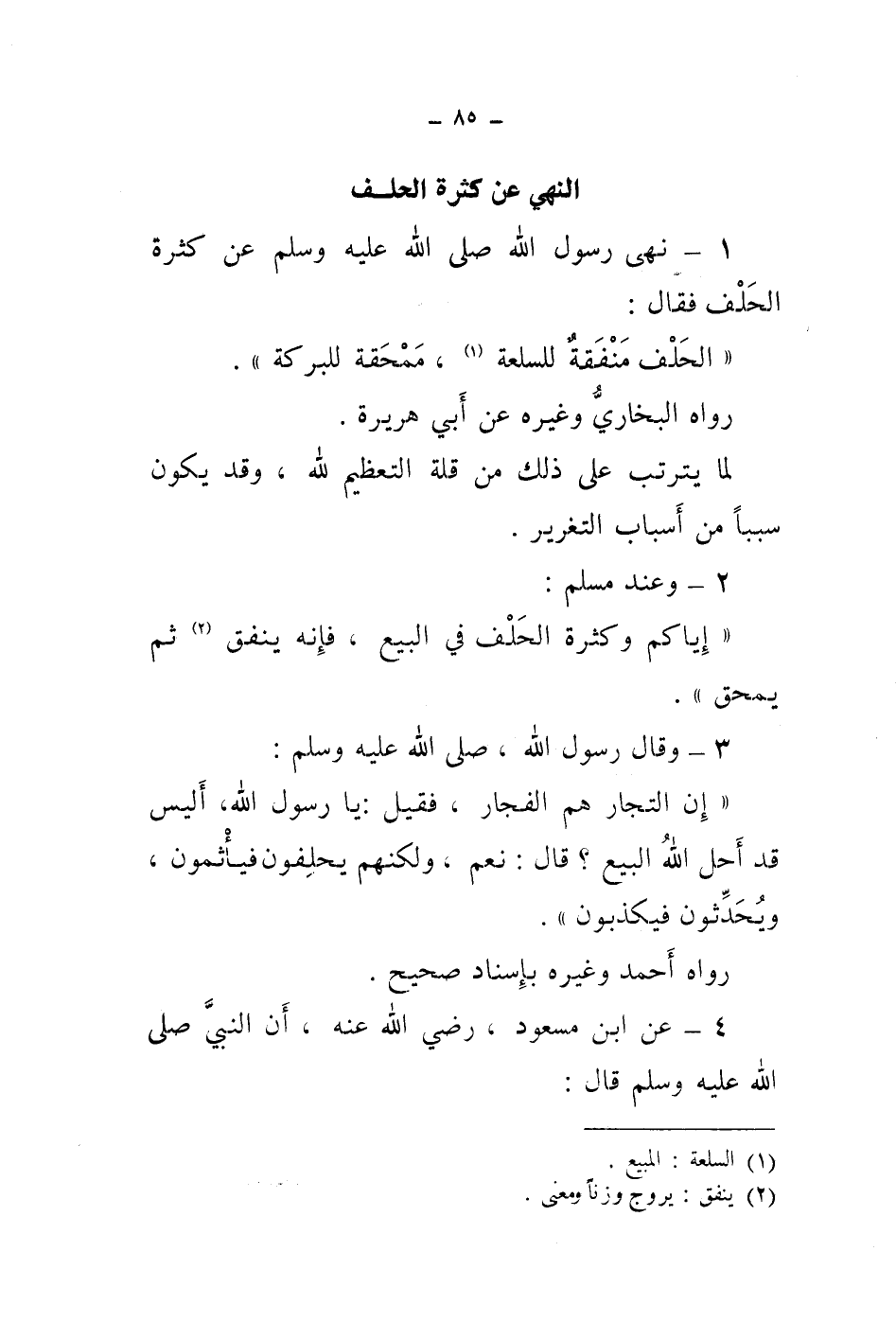 2 - وعند مسلم: (إياكم وكثرة الحلف في البيع، فإنه ينفق (2) ثم يمحق) .