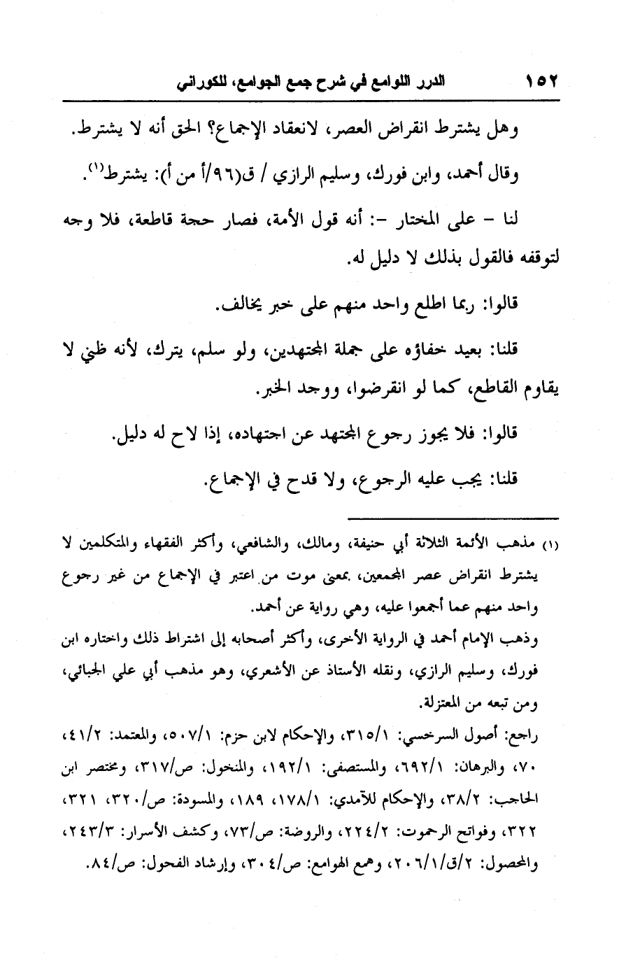 (١) مذهب الأئمة الثلاثة أبي حنيفة، ومالك، والشافعي، وأكثر الفقهاء والمتكلمين لا يشترط انقراض عصر المجمعين، بمعنى موت من اعتبر في الإجماع من غير رجوع واحد منهم عما أجمعوا عليه، وهي رواية عن أحمد.