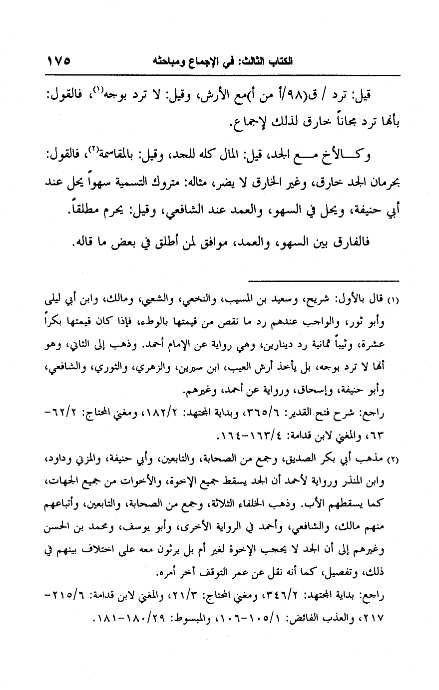راجع: بداية المجتهد: ٢/ ٣٤٦، ومغني المحتاج: ٣/ ٢١، والمغني لابن قدامة: ٦/ ٢١٥ - ٢١٧، والعذب الفائض: ١/ ١٠٥ - ١٠٦، والمبسوط: ٢٩/ ١٨٠ - ١٨١.