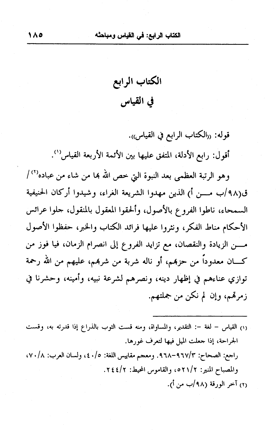 قوله: "الكتاب الرابع في القياس".