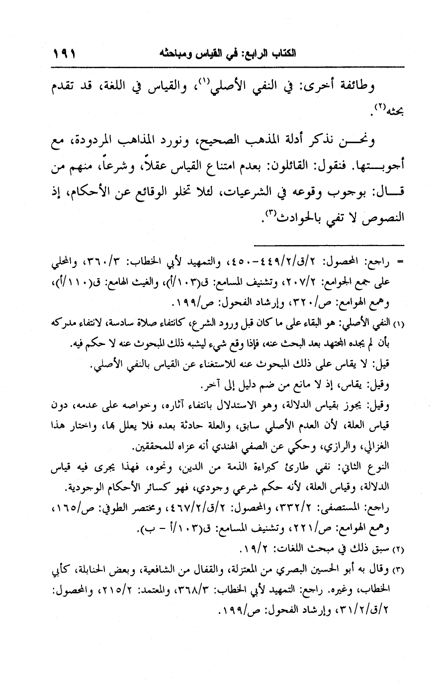 وطائفة أخرى: في النفي الأصلي (١)، والقياس في اللغة، قد تقدم بحثه (٢).
