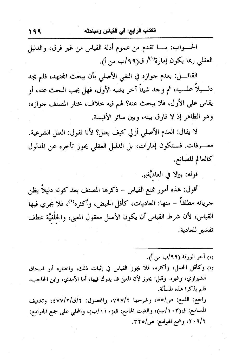 (٢) وكأقل الحمل، وأكثره، فلا يجوز القياس في إثبات ذلك، واختاره أبو إسحاق الشيرازي، وغيره. وقيل: يجوز لأن المعنى قد يدرك فيها، أما الآمدي، وابن الحاجب، فلم يذكرا هذه المسألة.