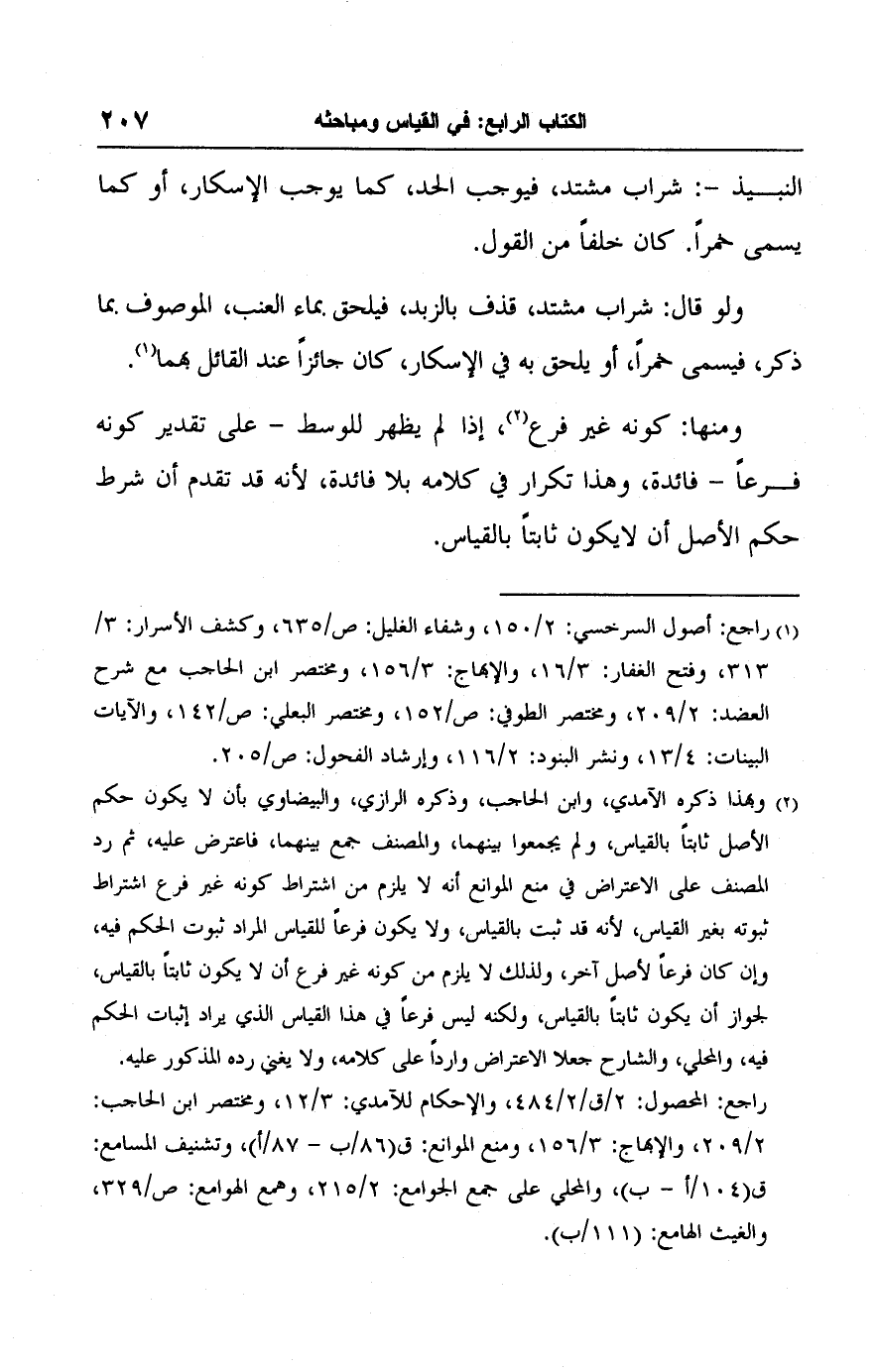 (١) راجع: أصول السرخسي: ٢/ ١٥٠، وشفاء الغليل: ص/ ٦٣٥، وكشف الأسرار: ٣/ ٣١٣، وفتح الغفار: ٣/ ١٦، والإبهاج: ٣/ ١٥٦، ومختصر ابن الحاجب مع شرح العضد: ٢/ ٢٠٩، ومختصر الطوفي: ص/ ١٥٢، ومختصر البعلي: ص/ ١٤٢، والآيات البينات: ٤/ ١٣، ونشر البنود: ٢/ ١١٦، وإرشاد الفحول: ص/ ٢٠٥.