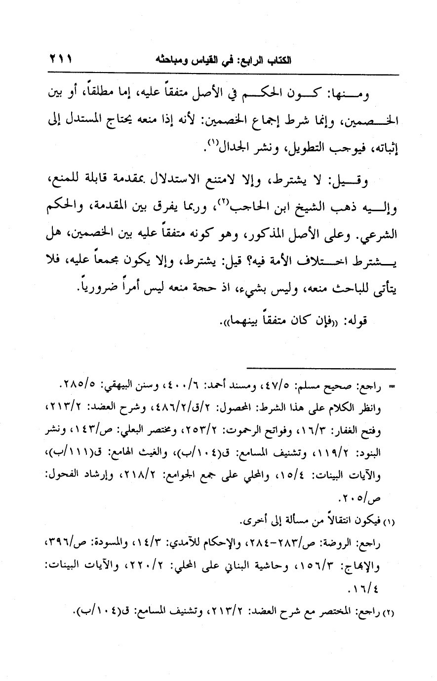= راجع: صحيح مسلم: ٥/ ٤٧, ومسند أحمد: ٦/ ٤٠٠، وسنن البيهقي: ٥/ ٢٨٥. وانظر الكلام على هذا الشرط: المحصول: ٢/ ق/ ٢/ ٤٨٦، وشرح العضد: ٢/ ٢١٣، وفتح الغفار: ٣/ ١٦، وفواتح الرحموت: ٢/ ٢٥٣، ومختصر البعلي: ص/ ١٤٣، ونشر البنودة ٢/ ١١٩، وتشنيف المسامع: ق (١٠٤/ ب)، والغيث الهامع: ق (١١١/ ب)، والآيات البينات: ٤/ ١٥، والمحلي على جمع الجوامع: ٢/ ٢١٨، وإرشاد الفحول: ص/ ٢٠٥.