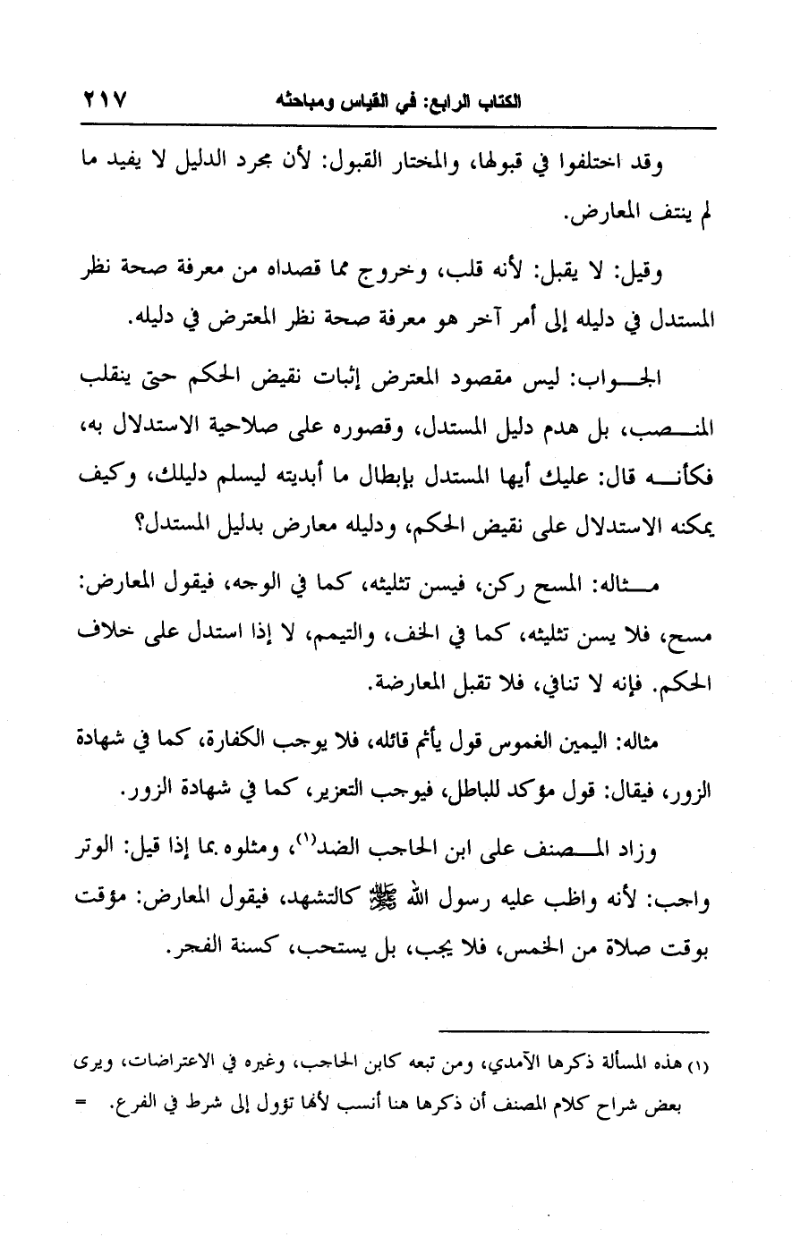 (١) هذه المسألة ذكرها الآمدي، رمن تبعه كابن الحاجب، وغيره في الاعتراضات، ويرى بعض شراح كلام المصنف أن ذكرها هنا أنسب لأنها تؤول إلى شرط في الفرع. =