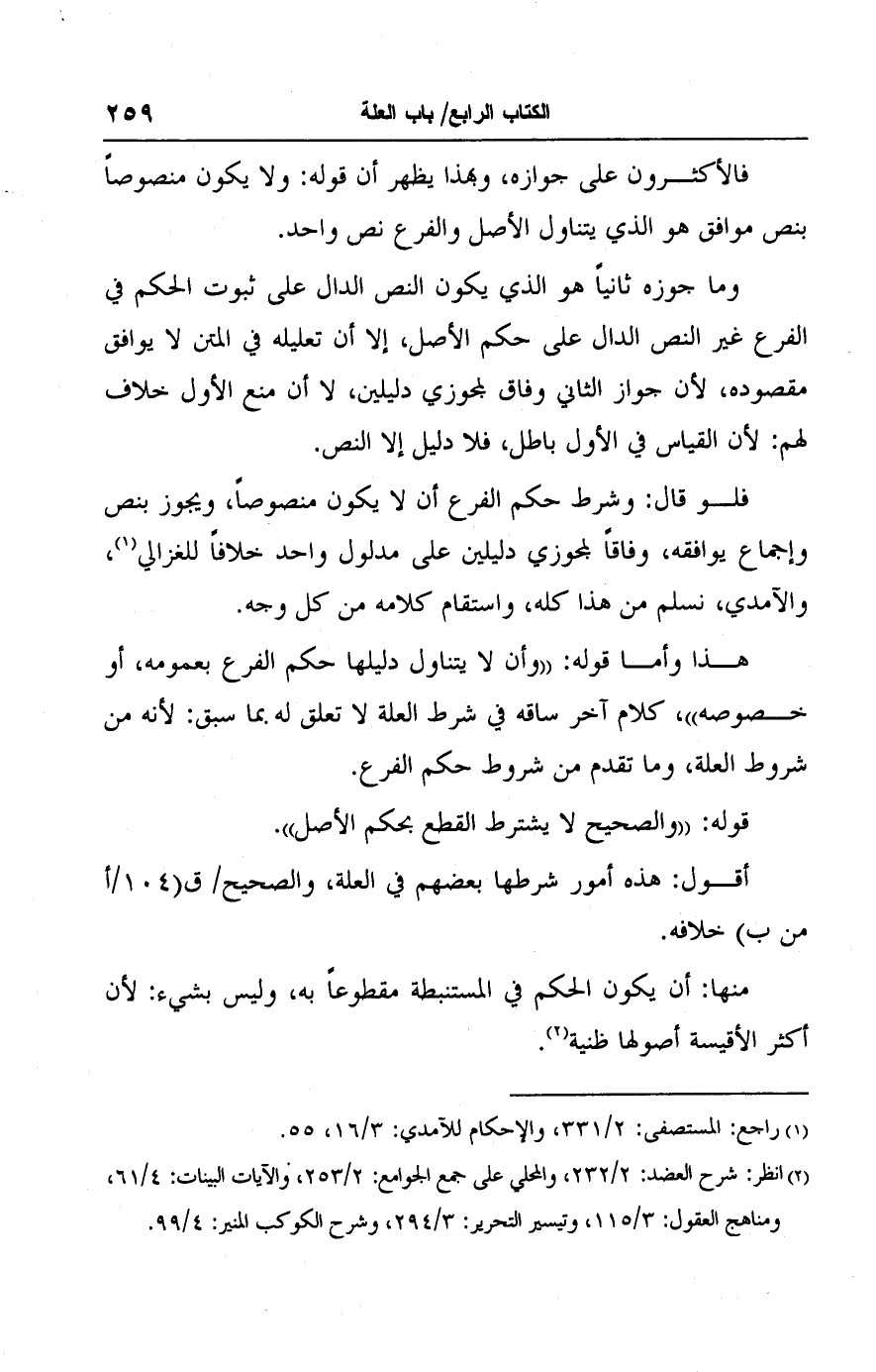 (٢) انظر: شرح العضد: ٢/ ٢٣٢، والمحلي على جمع الجوامع: ٢/ ٢٥٣، والآيات البينات: ٤/ ٦١، ومناهج العقول: ٣/ ١١٥، وتيسير التحرير: ٣/ ٢٩٤، وشرح الكوكب المنير: ٤/ ٩٩.