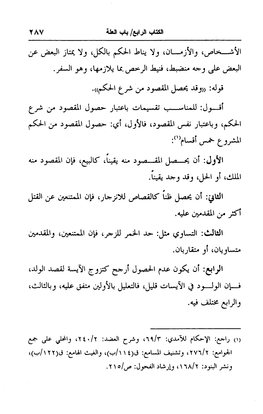 الرابع: أن يكون عدم الحصول أرجح كتزوج الآيسة لقصد الولد، فإن الولود في الآيسات قليل، فالتعليل بالأولين متفق عليه، وبالثالث، والرابع مختلف فيه.