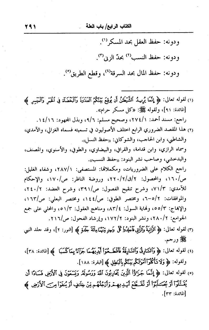 (٢) هذا المقصد الضروري الرابع اختلف الأصوليون في تسميته فسماه الغزالي، والآمدي، والشاطبي، وابن الحاجب، والشوكاني: "حفظ النسل".