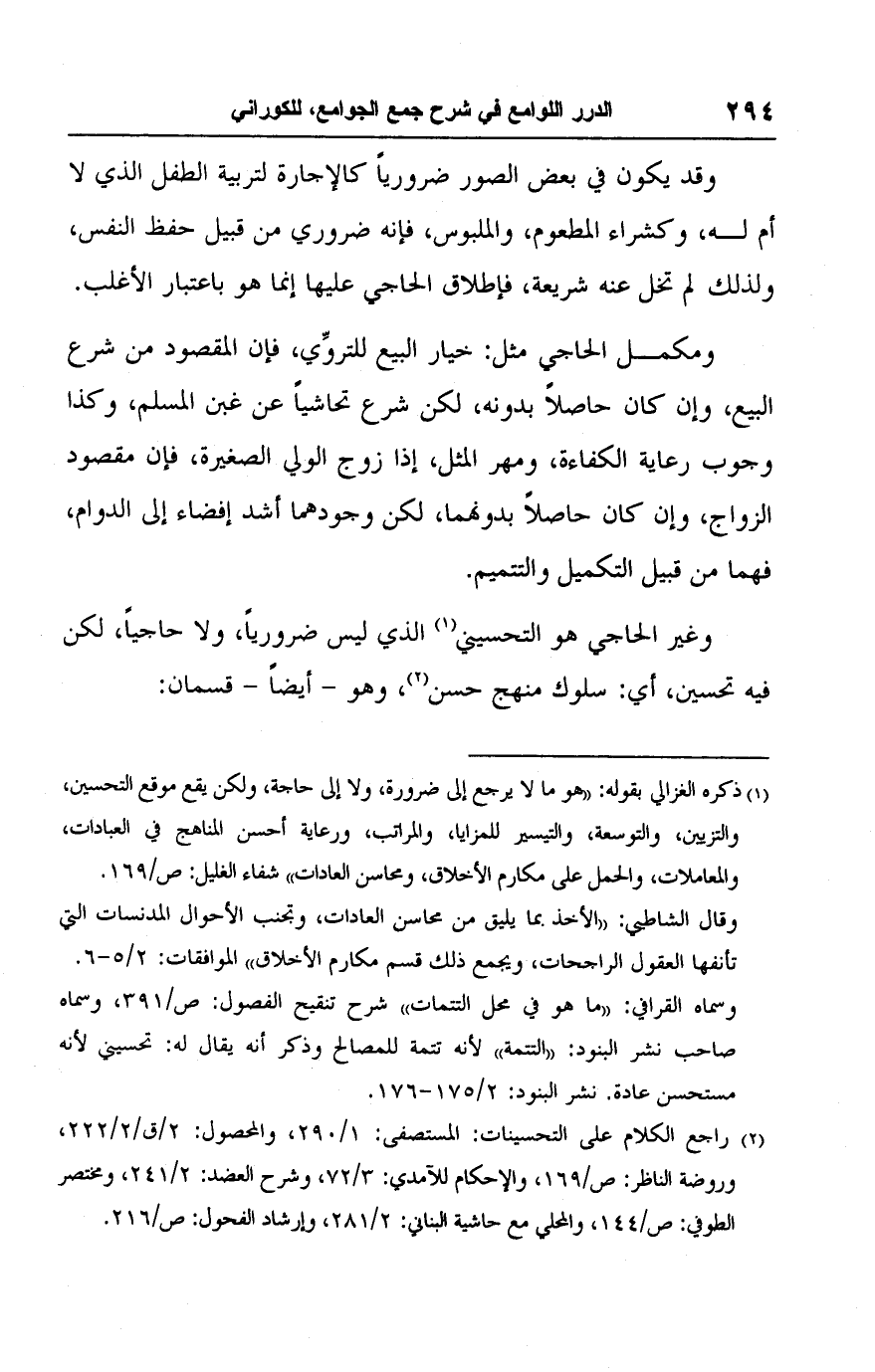 (٢) راجع الكلام على التحسينات: المستصفى: ١/ ٢٩٠، والمحصول: ٢/ ق/ ٢/ ٢٢٢، وروضة الناظر: ص/ ١٦٩، والإحكام للآمدي: ٣/ ٧٢، وشرح العضد: ٢/ ٢٤١، ومختصر الطوفي: ص/ ١٤٤، والمحلي مع حاشية البناني: ٢/ ٢٨١، وإرشاد الفحول: ص/ ٢١٦.