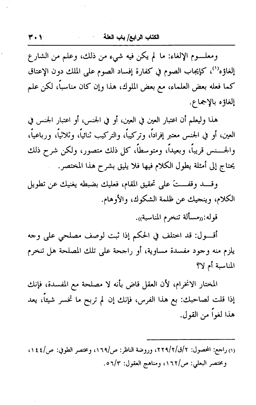 (١) راجع: المحصول: ٢/ ق/ ٢/ ٢٢٩، وروضة الناظر: ص/ ١٦٩، ومختصر الطوفي: ص/ ١٤٤، ومختصر البعلي: ص/ ١٦٢، ومناهج العقول: ٣/ ٥٦.