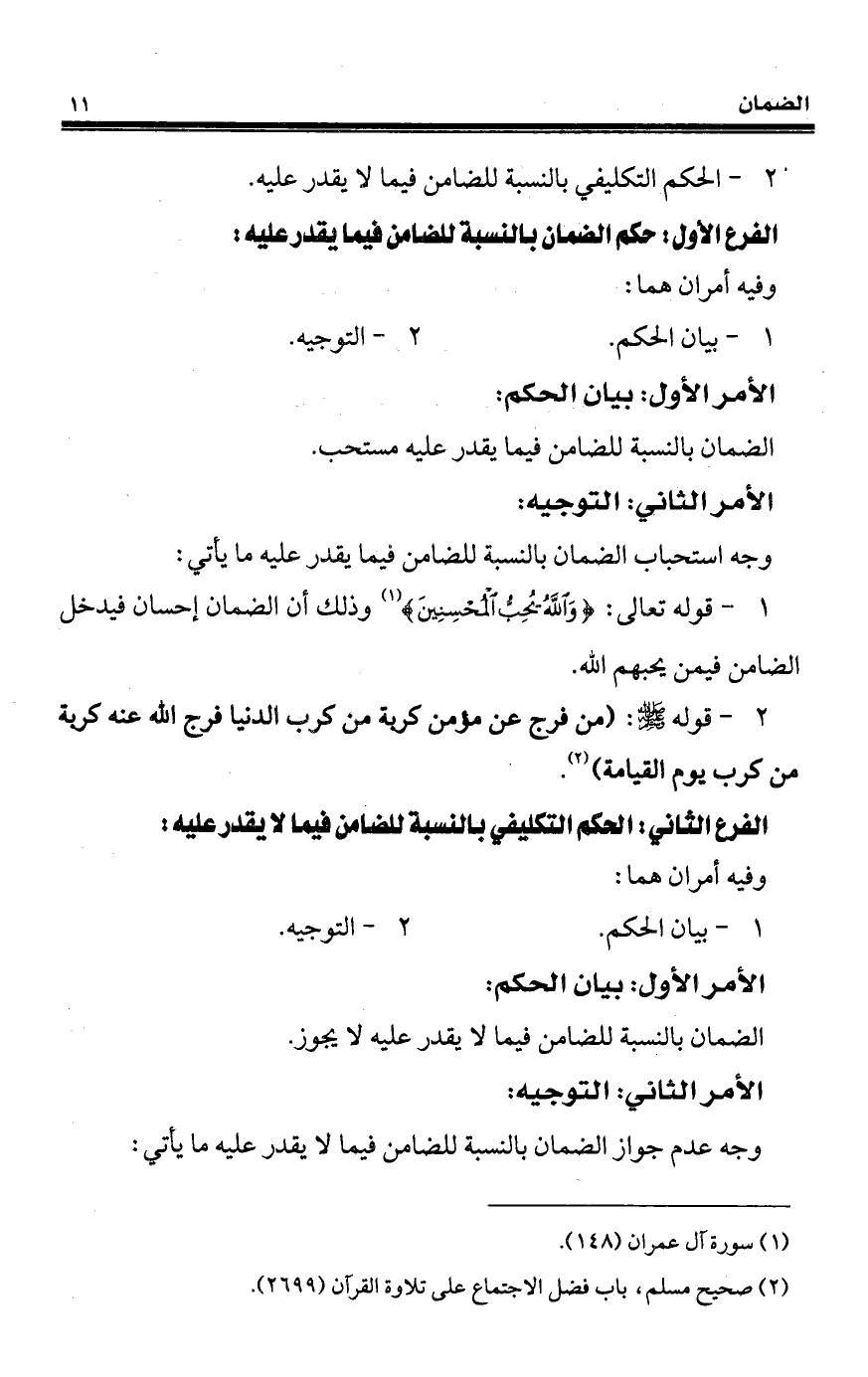 الفرع الأول: حكم الضمان بالنسبة للضامن فيما يقدر عليه: